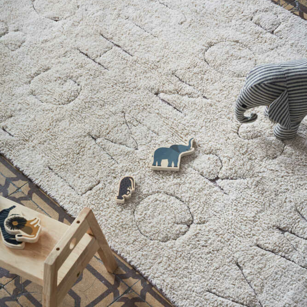 A new version of our round ABC rug, now in a rectangular shape that comes in 3 different sizes, and with the raw look and feel.